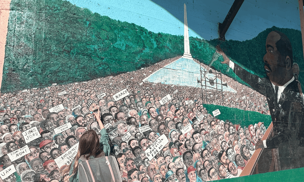We started at Washington Avenue, crossed over on the Suspension Bridge, and wandered over to Martin Luther King Jr Park. You’ll see an impressive mural of MLK Jr. and the March on Washington.