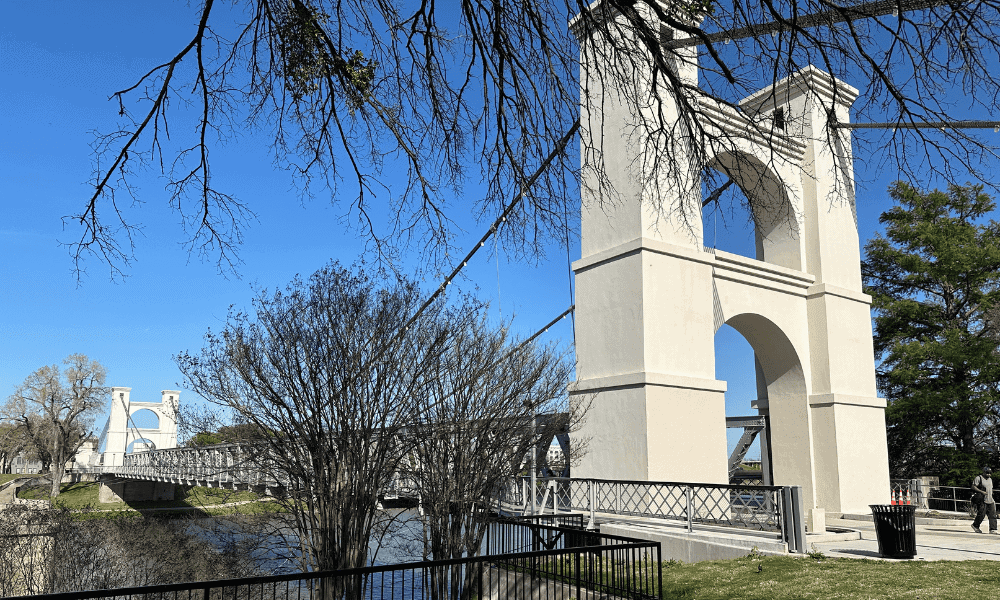 Late Afternoon/ Evening: Suspension Bridge and Dinner Even though our hotel was practically across the street from the Waco Suspension Bridge and we had walked past it multiple times when we were headed Downtown, we still hadn’t walked across it. This iconic structure offers a glimpse into the city’s past and stunning views of the Brazos River. And it’s a great spot for family photos!