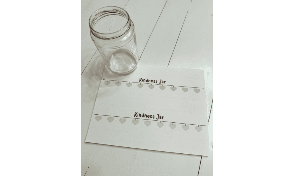 Once you’ve created a list, write these down on the Random Acts of Kindness Cards and put them in your labeled kindness jar. If you don’t have access to a printer, you can cut slips of paper and use those instead.
