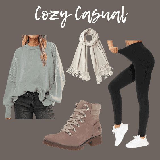 Pair super-comfortable leggings with an oversized sweater, scarf, and leather boots for a look that’s perfect for exploring a new city.