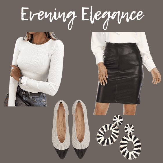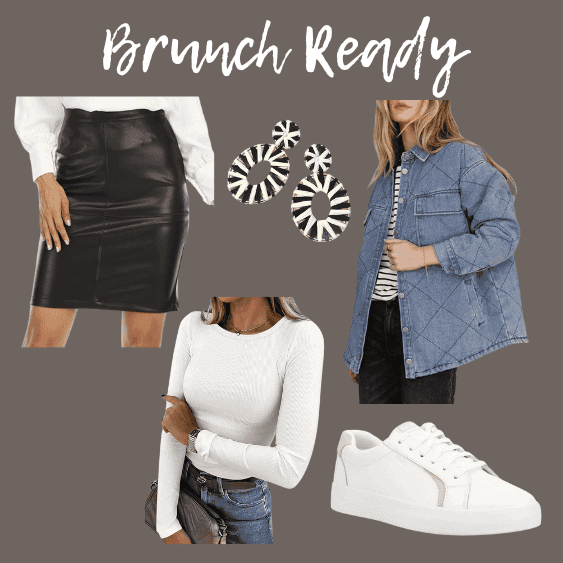 Pair your leather skirt with a soft long-sleeved tee, sneakers, and statement earrings for a trendy café outing.