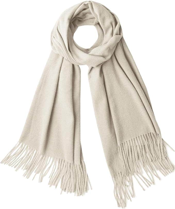 If I had to choose one scarf that would work for virtually any outfit in my closet, it’s this one. The soft beige color pairs perfectly with practically anything. And this one is oh so soft and cozy!
