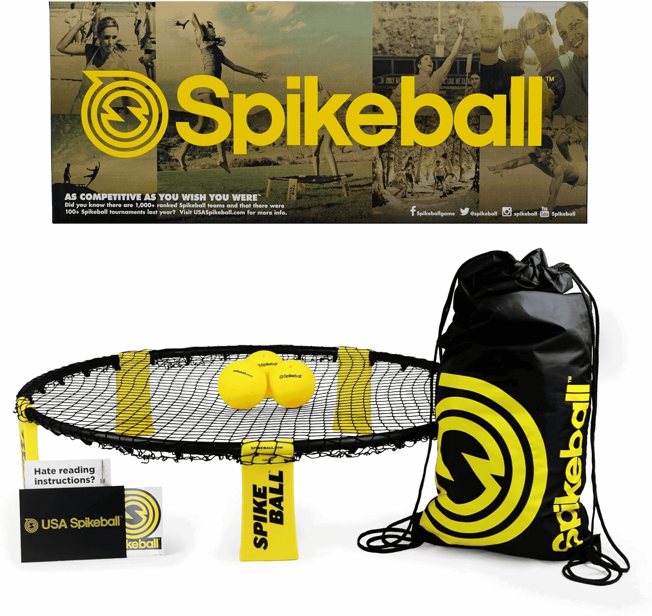 This fast-paced game is perfect for those who love volleyball. You’ll work in teams to hit the ball off the net and try to score points by making it difficult for your opponents to return it. The original version comes with a 3.5″ ball about the size of an orange. For newbies, you can try the Rookie Version with a cantaloupe-sized ball.
