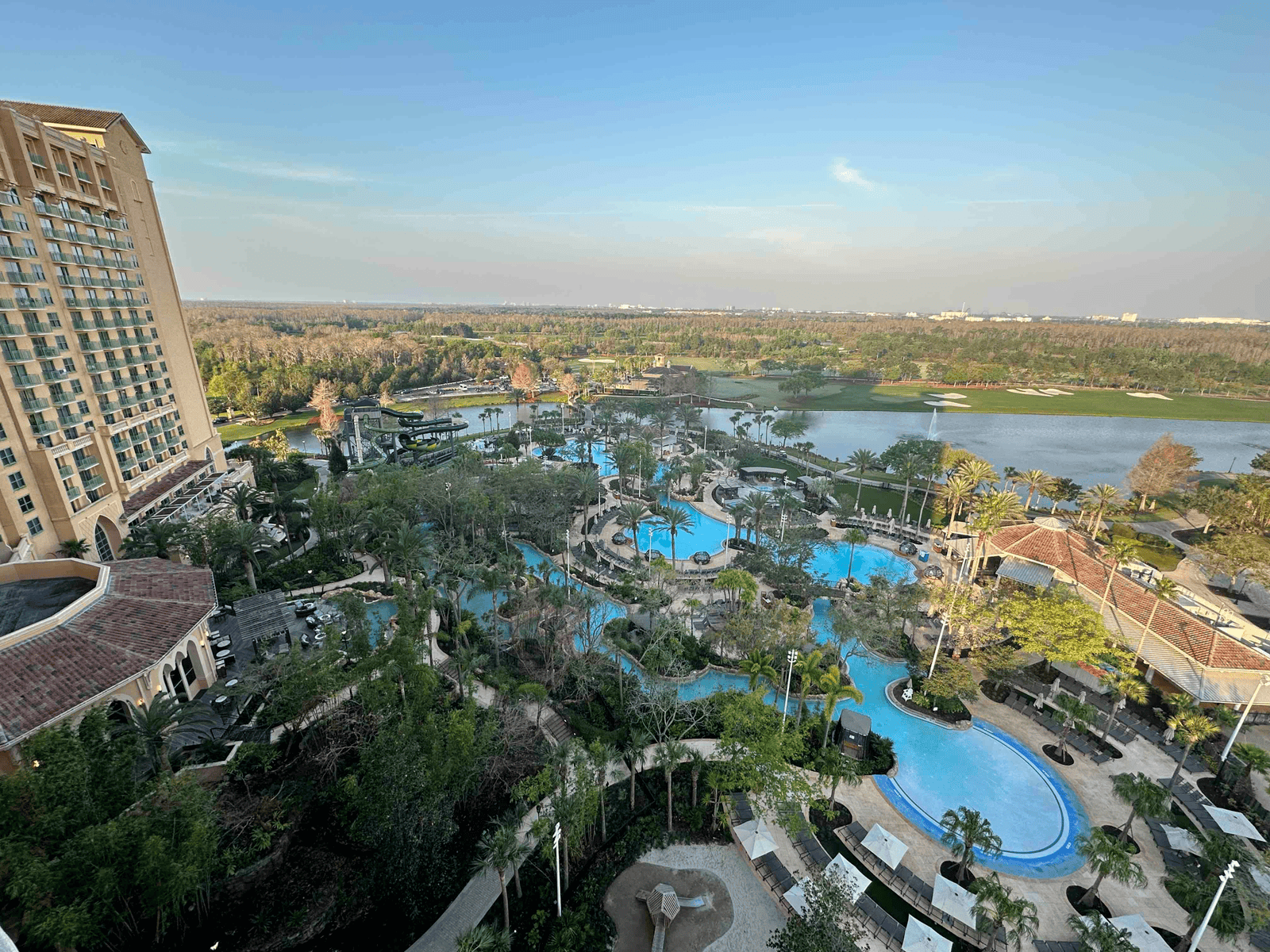 One of my favorite things about the room was the balcony. We had an incredible lake-view room that overlooked the resort waterpark I love drinking coffee from the balcony in the morning before I head downstairs and have to face people. The view of the gorgeous resort and pools made this a fabulous experience.