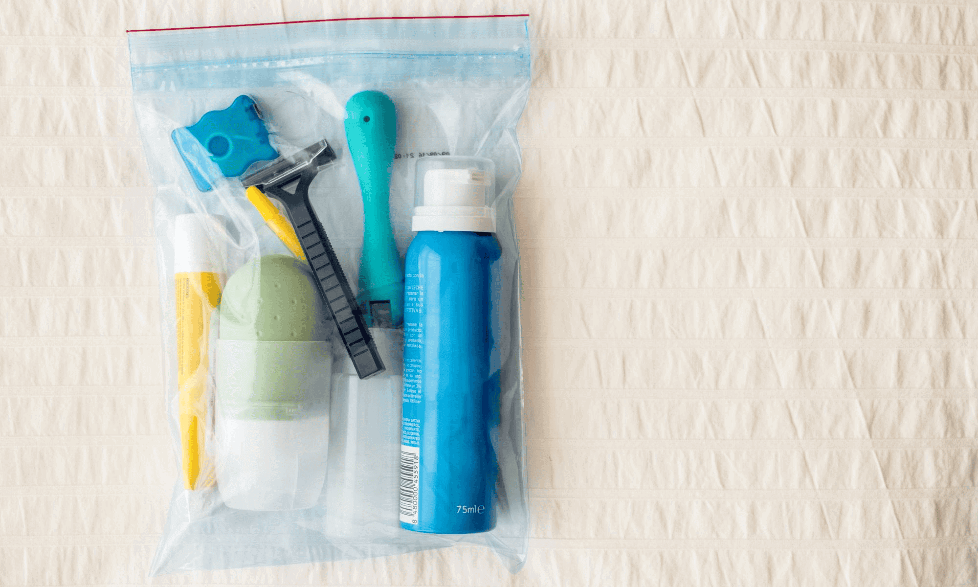 When packing toiletries, it’s important to remember that you can only bring one quart-size bag full of 3oz or smaller quantities of liquids and gels in a carry-on bag.