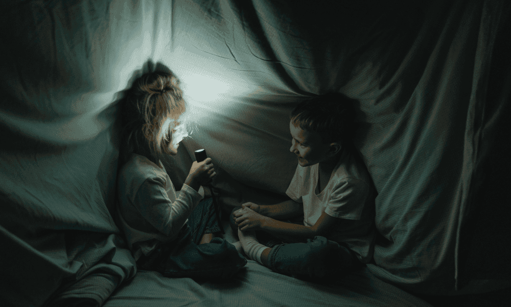 Read Halloween books for kids in a blanket fort with a flashlight. Prep some special snacks, so you can really enjoy this Halloween storytime.