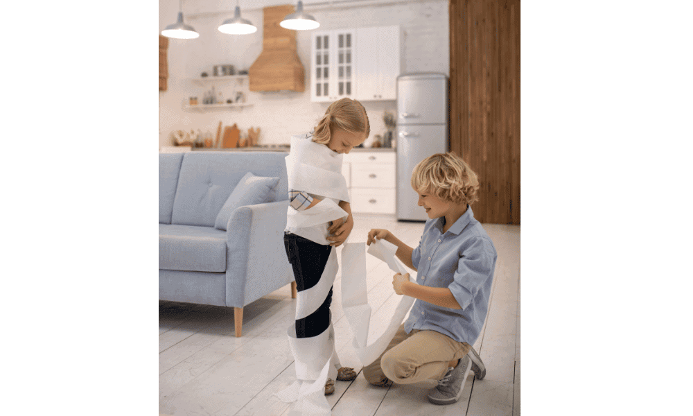 Use rolls of toilet paper to wrap each other up like mummies. This is a fun one to get the big kids involved with!