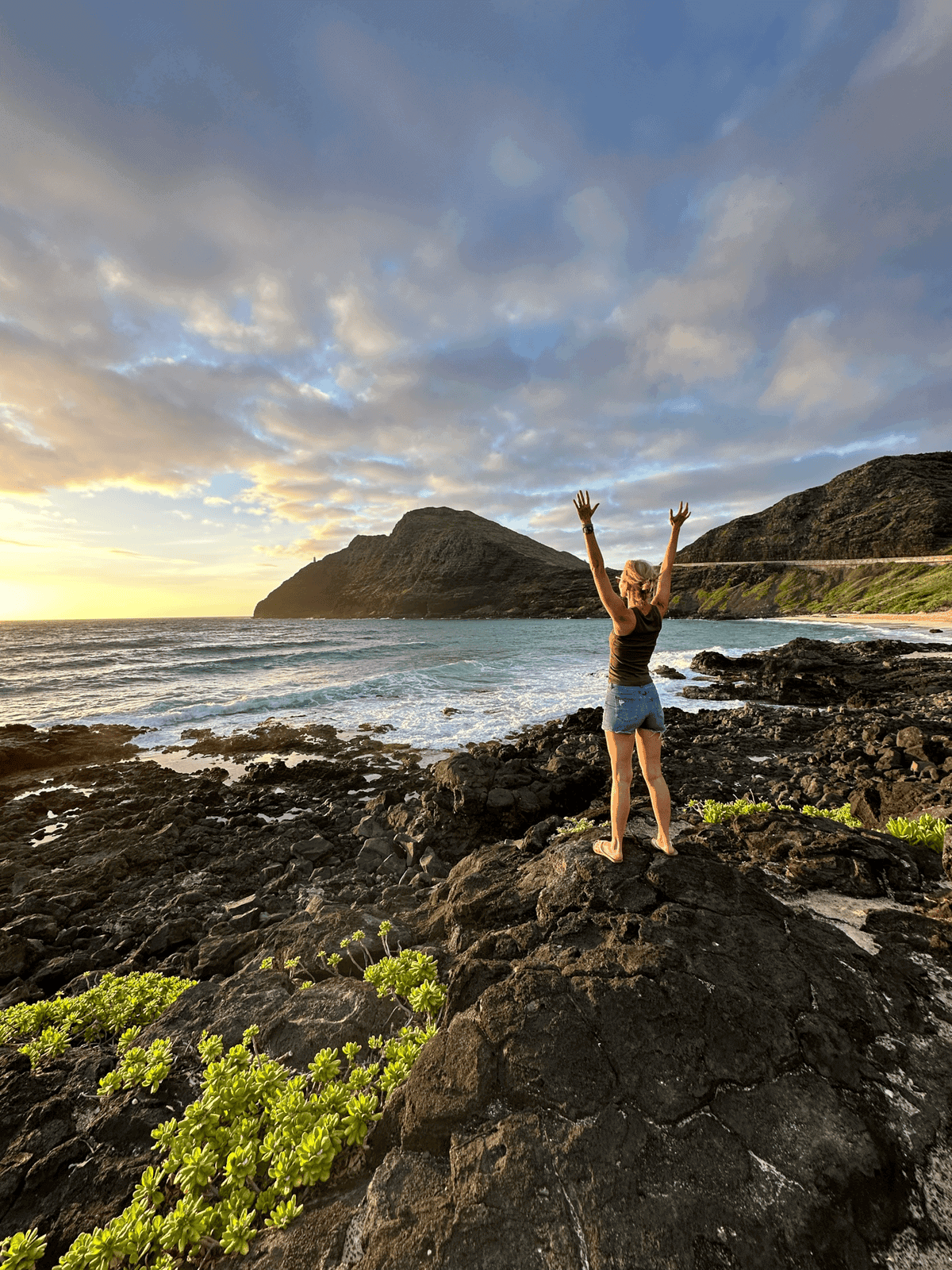 We parked in the Makapu’u Beach Park parking lot and walked over to the rocks overlooking the ocean. The waves crashing against a golden sky created an incredible backdrop for a sunrise time-lapse. We spent two mornings here because the view was that mesmerizing.
